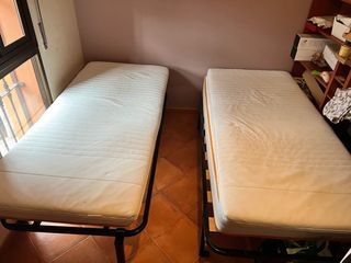Se venden dos camas plegables individuales, ideales para optimizar el espacio en dormitorios de invitados o habitaciones pequeñas. Son fáciles de guardar y desplegar. - Estructura metálica. - Colchón incluido.