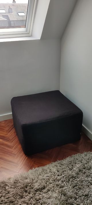 Puf cama Bo Concept en muy buen estado. El puf mide 70*70*42cm y pesa 24kg. La cama desplegada mide 70*200cm. Es cómoda y aguanta peso de hasta 125kg. Precio nuevo actual 519€.