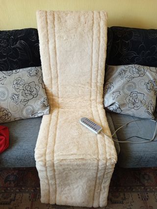 Colchón con función de vibromasaje. - Regulable por zona e intensidad. - Material de lana suave y confortable. - Incluye mando a distancia para controlar las funciones. - Ideal para poner encima de tu sofá favorito y es plegable. - Precio original 170 - No conozco la marca, tuve que poner una obligatoriamente.