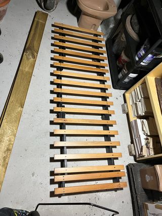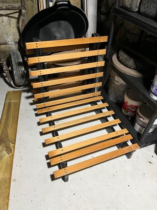 Somier plegable de madera y metal, ideal para camper o uso general/ hecho a medida, se puede convertir en sofá junto cn el futón. Materiales de primera calidad PVP original 350 euros futon y somier a medida. - Estructura de madera. - Diseño plegable para fácil almacenamiento. Y adaptación a tus necesidades camper. Medidas: Somier: 200 de largo x 65 ancho y 15 cm de alto Colchón: 190 x 80 x15 Cama camper sofa camper colchon camper futon