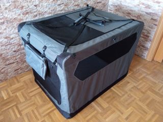 Caseta plegable para mascotas grande ligera con estructura de aluminio. Ideal para pastor alemán o similares. Nunca se ha usado. Sólo abierta para comprobar que estaba todo bien. La mejor forma de que tu mascota se sienta como en casa en cualquier lugar.