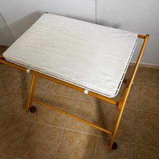 Cambiador de bebé plegable con estructura de madera y colchoneta. - Colchoneta blanca. Somier metalico. - Ruedas para facilitar el desplazamiento. Está algo usado, pero conserva el buen aspecto, y está en perfectas condiciones de uso. *** PRECIO NO NEGOCIABLE ***