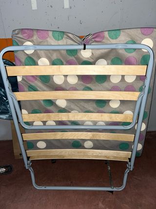 Cama plegable con estructura metálica y base de madera. Signos de uso por haber estado guardada algún tiempo. - Diseño práctico y funcional. - Fácil de almacenar y transportar. Más cositas en mi perfil. Necesito espacio,vendo muchas cosas por cambio de domicilio!