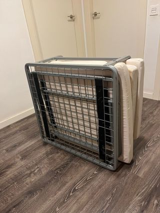 Cama plegable individual como nueva. Es perfecta para invitados o espacios reducidos. Muy ligera y fácil de transportar por sus 4 ruedas .Cama de 80 × 1,90. Plegada mide 80x30x105 cm. Está en Salou pero hay posibilidad de recogerla en Zaragoza. - Estructura metálica resistente. - Incluye colchón - Fácil de plegar y guardar.