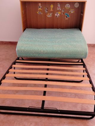 Cama plegable con mueble de madera color marron -Está en buen estado. -Cama de 1'05 - Ideal para espacios -reducidos