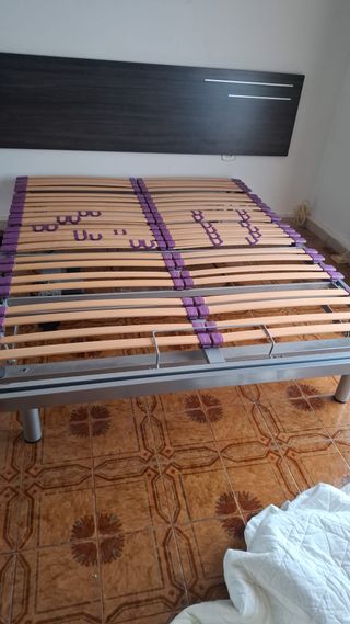 Somier con motor para reclinar la cama. - Estructura metálica. - Lamas de madera. - Base con motor para ajuste de posición.