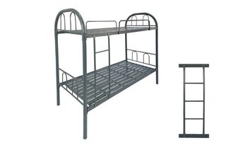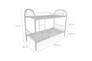 Litera metálica de formas redondeadas con somieres resistentes de barras metálicas incluidos, asi como incluyendo también la barrera quitamiedos y la escalera. Fabricada su estructura con tubo metálico pintado con pintura electroestática, para colchones de 90 x 190 (NO incluidos). Color único disponible, gris. Se entrega en kit pre-montado con manual de instrucciones para su fácil montaje. Estamos en la calle Joaquin Rubio i Ors 195 de Cornella.