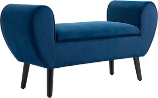 Banco Contenedor Acolchado para Dormitorio y Entrada, Banco de Pie de Cama en Tejido Aterciopelado con Brazos, 118X42X66Cm, Azul