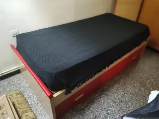 Se vende cama individual con colchón, y con somier supletorio que se guarda debajo de ella. - Estructura de madera. - Colchón de tela. Se vende por reeestructuración de piso, solo 6 meses de uso.