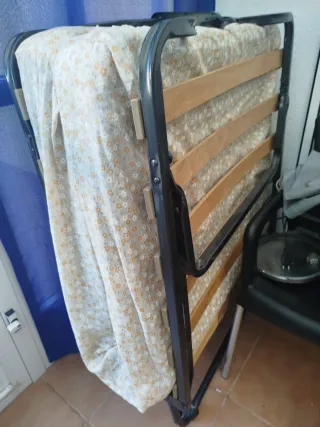 Cama supletoria plegable con colchón incluido (viscoelástico), de medidas 93 x 193 cm. Poco uso. - Estructura de madera y plástico. - Colchón de espuma.