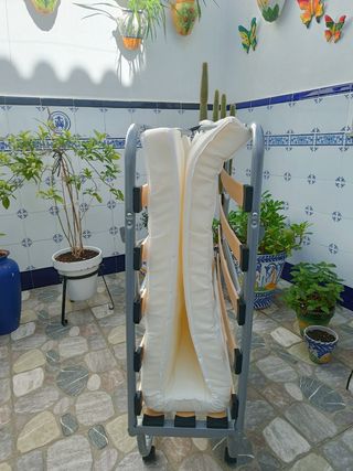 Somier muy apropiado para el máximo aprovechamiento del espacio o como cama supletoria, ya sea para visitas u otras necesidades. - Facilidad de uso y transporte 🔛 - Colchón de espumación incluido 🪶 - Cuenta con su embalaje 📦 - Negociable 🤝