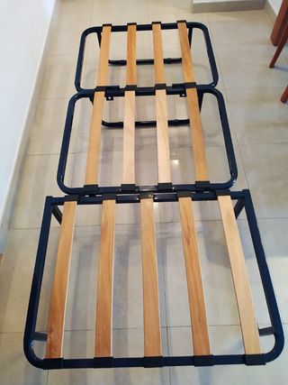 Lo tengo en Sabadell. Somier de 80cm x 180cm, con patas y ruedas incluidas. Casi nuevo, nunca utilizado, siempre guardado para cama supletoria. El precio es negociable. - Estructura metálica. - Láminas de madera.