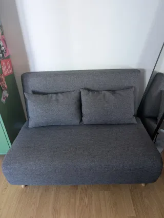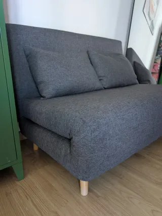 Sofá cama de dos plazas, perfecto para espacios reducidos o como asiento adicional. - Tapicería de tela. - Diseño moderno. Lo tenía como cama supletoria para invitados y ha sido usado apenas 5-6 veces. Ahora necesito el espacio para poner un armario y por eso lo vendo.