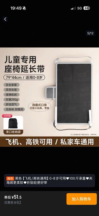 Cama portátil de color gris, ideal para viajes en avión o tren. Es cómoda y fácil de transportar. - Apta para niños de 0 a 8 años. - Soporta hasta 100斤 (aproximadamente 50 kg). - Material suave y plegable. - Diseño práctico y compacto para llevar.