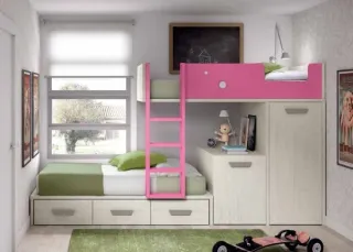 Cama- litera con pequeño armario y dos cajones.