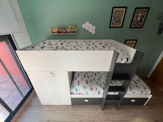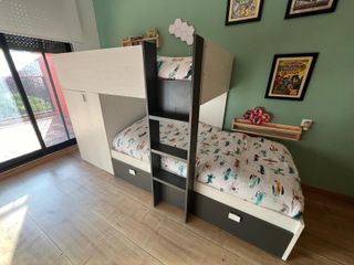 Cama tren con muy poco uso 2 camas Armario y dos cajones con espacio de almacenaje Somier y colchones no incluidos