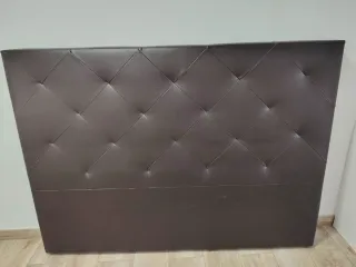 Cabecero de cama con un diseño capitoné moderno y elegante. Añade un toque sofisticado a tu dormitorio. - Diseño capitoné con rombos. - Acabado en piel sintética. - Color marrón oscuro. Está en buen estado, casi nuevo, pero tiene un arañón, arriba a la derecha. (última foto).