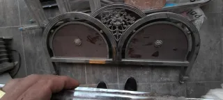 Estructura de cama antigua con un diseño elegante y detalles ornamentales. De 1'35x 1'90 - Combinación de materiales metálicos y de madera. - Acabado en tonos plateados y marrones. - Diseño con arcos y adornos florales en la cabecera.
