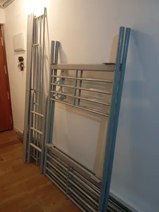 Se vende base de cama nido tipo canguro, con muy poco uso, menos de un año. - Estructura metálica. - Láminas de madera.