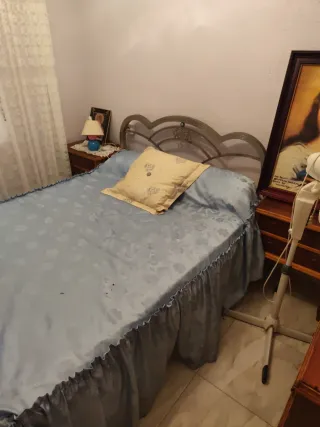 Se vende estructura de cama de matrimonio. - Cabecero con diseño curvo. - Marco de metal resistente. - Con o sin colchón El comprador debe encargarse de venir a recoger, desmontar y transportar