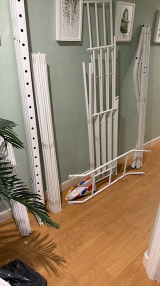 Estructura de somier en buen estado, tiene muy poco uso como se puede observar en las fotos. INCLUYE PATAS. Precio negociable. - Medidas: 105x190 cm - Color: beige y negro - Material: metal y madera