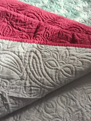 Colcha de cama 90 vale para 105 también, tengo 2, quedan preciosas, están nuevas, tela muy cómoda