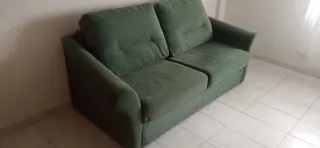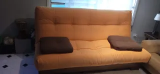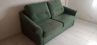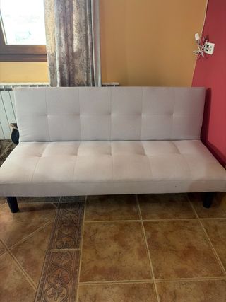 Sofá cama funcional y cómodo, ideal para cualquier espacio. Mide 170 cm. Está nuevo sin estrenar, lo vendo porque he comprado otro más grande. Es fácil su transporte porque se cierra entero. También cambio por algo que me interese. - Tapicería de tela. - Estructura metálica.