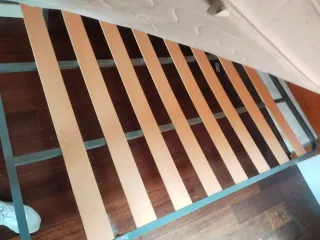 Somier para cama nido de 90 cm. Se venden juntos los dos, la cama nido se eleva a la misma altura que la que esta de pie. - Estructura metálica. - Láminas de madera.