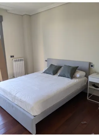Se vende cama de matrimonio francesa de 1.50m, con un diseño moderno y elegante. - Cabecero tapizado(una pequela parte está pelada,muy poco) - Base de cama - Estructura de madera resistente. -Las mesillas estan incluidas -si queres cama+colchon 400 eur