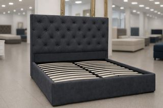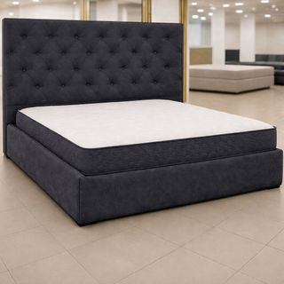 Cama con diseño capitoné y base abatible, ideal para optimizar el espacio de tu habitación. Su estructura tapizada ofrece un acabado elegante. - Cabecero capitoné. - Base abatible para almacenamiento. - Tapizado en tela.