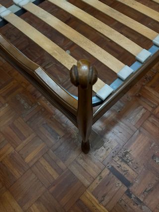 Estructura de cama de 135 cm con un diseño clásico y elegante. - Fabricada en madera de alta calidad. - Somier de láminas incluido. Los laterales son metálicos. El mueble no está incluido, pero si lo quieres por 50 €, te lo llevas todo.