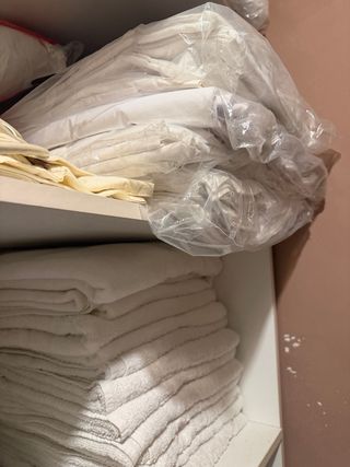 Lote de ropa de cama, sábanas, toallas y colchas. - Color blanco. - Material de tela. Sabanas para camas de 90 hasta 1,20 De 1,35 y 1,50 Toallas baño, de lavabo y Toallones Por lotes De 6 o 12 se baja precio Juego sabanas 90 --- 7,50 eur Juego cama grande -- 10 Toalla lavabo-- 2,5 Toalla 75 x 1,50 ---3,5 Toallon 90 x 1,80. 4,5