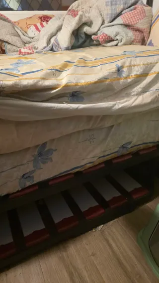 Cama nido con un diseño práctico y funcional.medidas 1.80, un colchón está mal el otro bien. - Estructura principal de madera. - Base con listones de madera. - Marco de metal resistente.