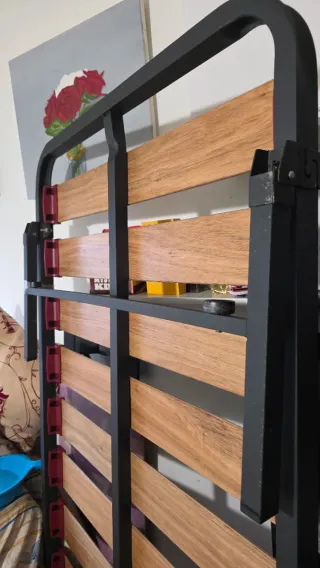 Cama 135 cm madera y metal.