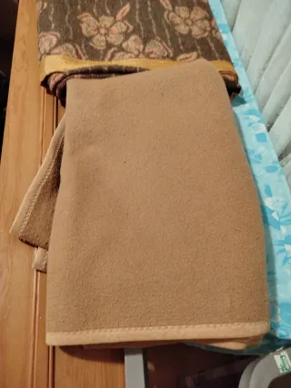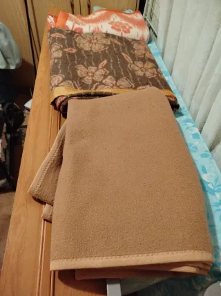 Conjunto de mantas de cama con un diseño floral. Dos mantas son para cama de 90 y la del medio para cama de 1.20. - Manta con estampado floral en tonos marrones y naranjas. - Manta lisa en color marrón. Se venden sueltas también a 15 .