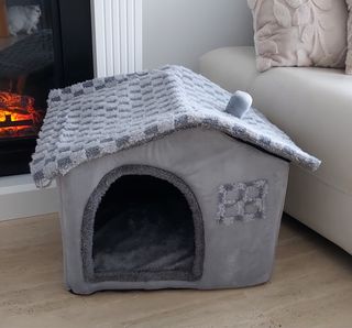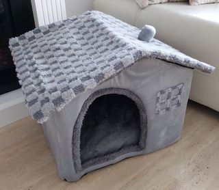 Acogedora casita para gato o perro, con un diseño encantador. - Material suave y confortable. - Techo a dos aguas con detalle decorativo. - Cojín mullido y suave, con cremallera - Toda la casita se puede desmontar con cremallera, para facilitar el montaje y lavado - Tamaño grandecito 45cm de ancha - Es nueva completamente y realmente bonita