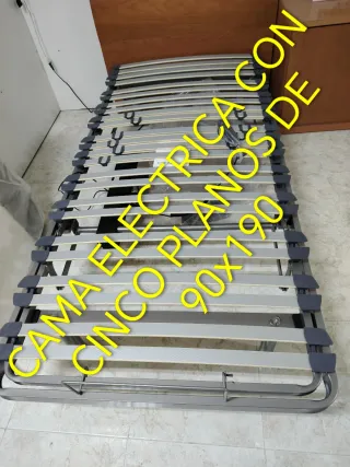 Base de cama eléctrica con cinco planos, ideal para un descanso personalizado. Su diseño permite ajustar diferentes posiciones para mayor comodidad. SOMIER ELECTRICO, MOTOR SILENCIOSO CON 5 PLANOS, MAS COLCHON VISCOELASTICO CON NUCLEO SOLIDO DE 90x190, NUEVO A EXTRENAR. - Estructura metálica robusta. - Cinco planos de articulación. - Dimensiones: 90x1.90 cm.