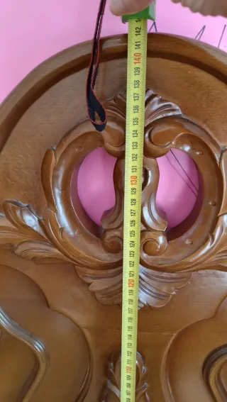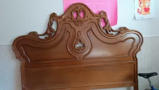 Elegante cabecero de cama con un diseño clásico y detalles tallados.para cama de 1,35 - Acabado en tono madera natural. - Elaborado con madera de calidad. - Diseño ornamentado con curvas y motivos. - Aporta un toque de distinción a tu dormitorio.
