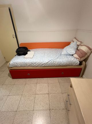 Se vende conjunto de dormitorio con cama nido. - Cama de 90 con cama nido - Respaldo naranja. - Incluye cojines