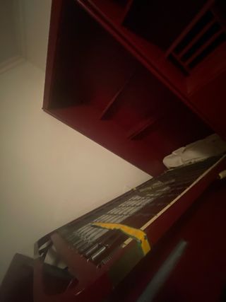 Se vende conjunto de armario y cama en color rojo. - Armario con puertas y estantes. - Cama individual.