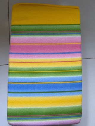 Juego de sábanas térmicas de 3 piezas para cama de 150 cm. El diseño presenta un alegre estampado de rayas multicolor. - Incluye 3 piezas. - Tejido suave y cálido. - Estampado de rayas vibrantes.