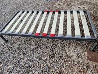Base de somier para cama nido, con un diseño moderno y funcional. - Estructura metálica resistente. - Láminas de madera flexibles. - Soportes de plástico en color rojo y gris. Sirve para cama normal o para crear una cama nido poniendo debajo el somier con ruedas y colchon