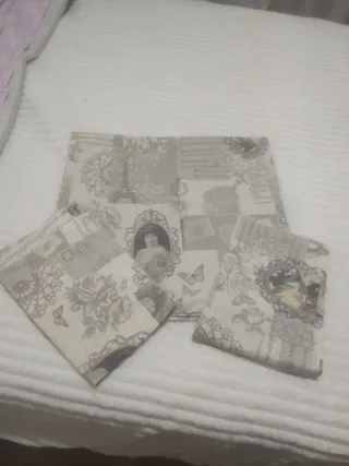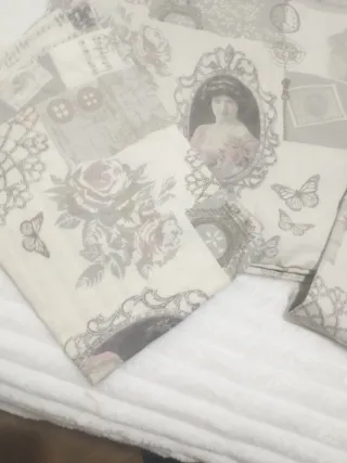 Funda nórdica para cama de 150 cm con un bonito estampado vintage con dos fundas de cojin. - Diseño con motivos florales, encajes y escenas retro. - Ideal para dar un toque elegante a tu dormitorio.