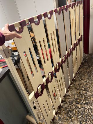 Somier reforzado de la marca RELAX, modelo GRAN LAMA. - Muy resistente. - Láminas anchas de madera. - Soportes de plástico resistentes. - Diseño con orificios para ventilación. Algunos desperfectos en la pintura pero extructuralmente en buenas condiciones.