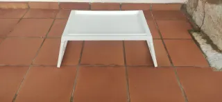 Práctica bandeja para usar en la cama o como mesa auxiliar. - Color blanco. - Diseño rectangular con bordes elevados.