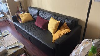 Sofá cama negro de tres plazas.