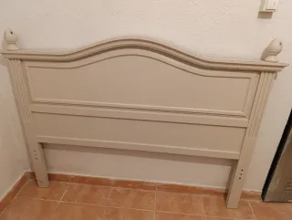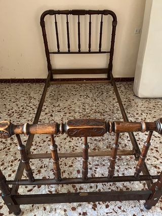 Conjunto de cabecero y pies de cama de madera Cama completa con travesaños metálicos venta individual o conjunta 20€, 10€,10€ cama completa 50€ hay dos camas completas de 190/100 - Piezas de madera maciza. - Detalles tallados. - Estilo barroco.