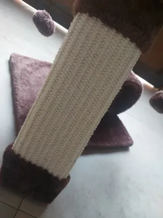 Rascador y casita para gatos, ideal para que tu mascota juegue y descanse. - Estructura de varios niveles. - Incluye mini túnel. - Bolas colgantes para jugar.