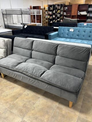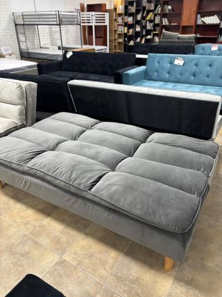 Sofá cama de terciopelo gris, ideal para espacios pequeños o como asiento adicional. - Tapicería suave y confortable. - Diseño moderno y funcional. - Disponible en 2 tonos de gris MEDIDAS: Ancho: 180 cm Fondo: 51 cm Alto: 74cm . Pago en casa . Entrega a domicilio llámanos al 66.7.9.6.3.13.6.