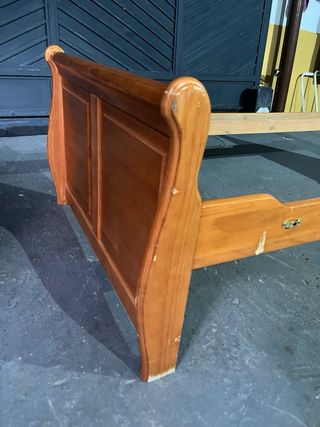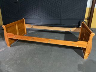 Cama antigua de madera con somier